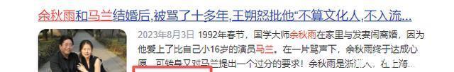 老夫少妻?抛妻弃子?舆论如潮,马兰被扣“小三”帽子,余秋雨被骂“陈世美”。 结婚后马兰淡出舞台,有人误会是余秋雨“雪藏”她,其实不然。 2006年余秋雨在博客爆料:马兰在安徽剧院受不公压制,新戏不给她,机会全给新人。